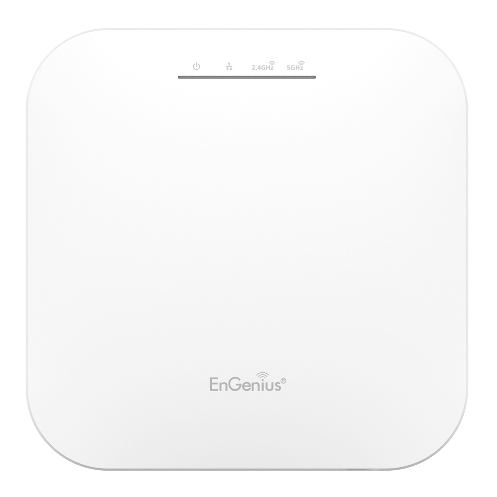 EnGenius EWS357АP – беспроводная точка доступа к интернет-сети по протоколу Wi-Fi для мобильных девайсов (ноутбуков, смартфонов). Поддерживаются последняя спецификация вай-фай 802.11ax и более ранние версии. Согласно стандартам, информация передается в беспроводном режиме в 2 частотных диапазонах: 2,4 гигагерц со скоростью 574 мегабит/cек. и по менее загруженной линии 5 гигагерц со скоростью 1,2 гигабит/сек. для объемных файлов. Для усиленной защиты передаваемых данных поддерживается шифрование по протоколу WPA3.