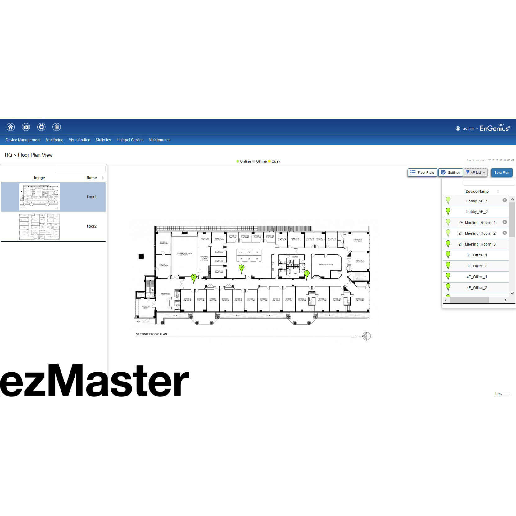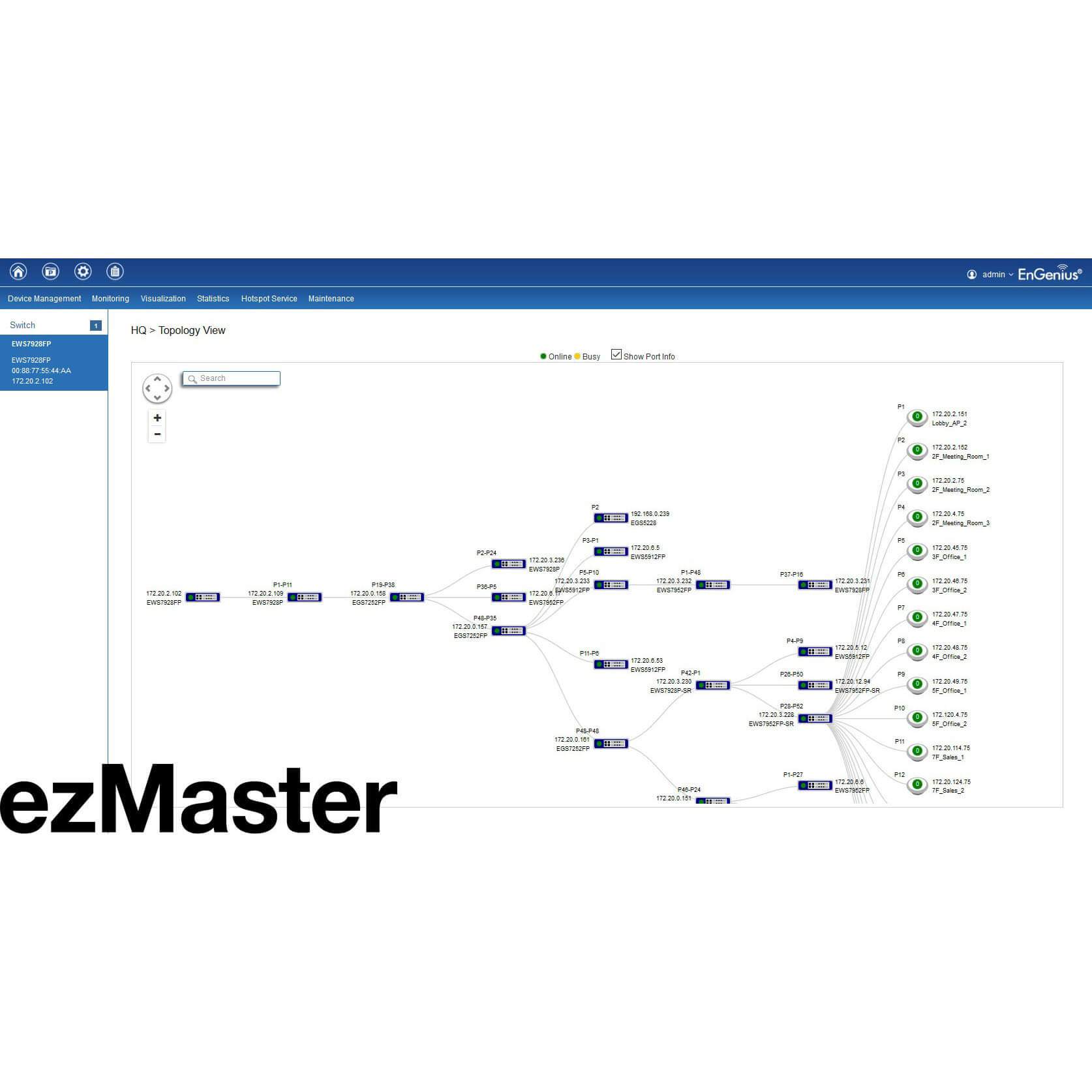 Программное обеспечение EnGenius ezMaster Network Management предназначено для развертывания и управления компьютерными сетями, которые соединяют до 1000 точек доступа к интернету. Широкий набор опций программы содержит меню настроек системы, богатый функционал аналитики с графическими и табличными отчетами, рассылку результатов на закрепленную за аккаунтом электронную почту, опции оптимизации при высоких нагрузках.